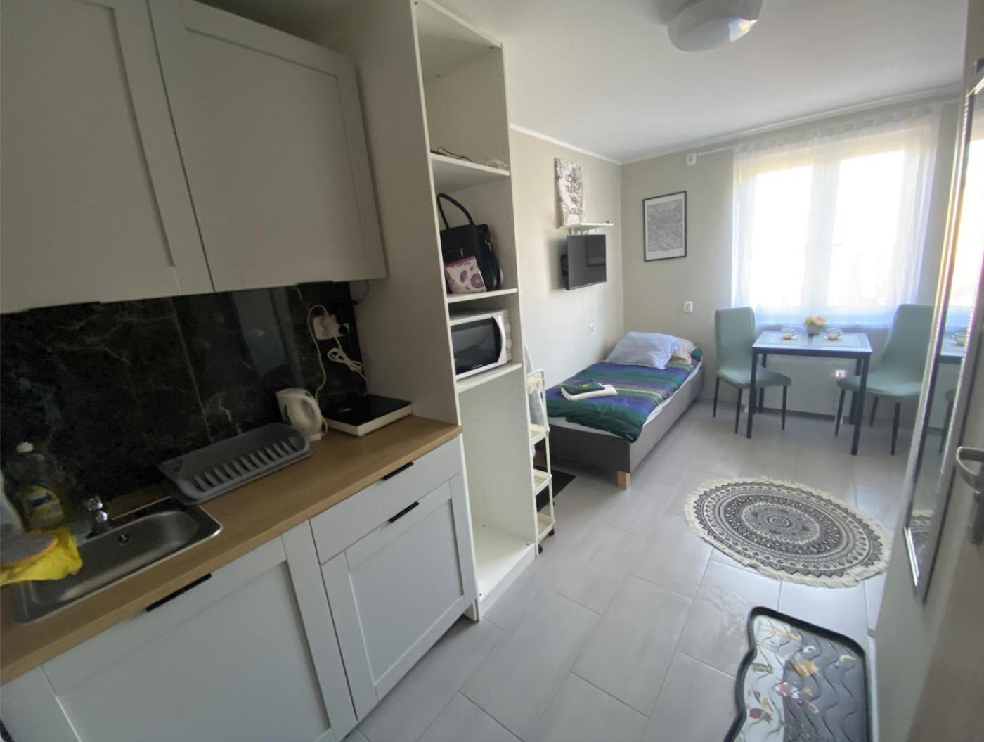Apartament z 1 sypialnią. Boasting a private entrance, this apartment features a kitchenette, 1 bedroom and 1 bathroom with a shower and a hairdryer. The apartments kitchenette, which has a refrigerator, is available for cooking and storing food. The apartment features a washing machine, a wardrobe, an electric kettle, a flat-screen TV, as well as garden views. The unit has 2 beds. Apartament - 2 osobowy. Powierzchnia pokoju ok.: 17 mkw.