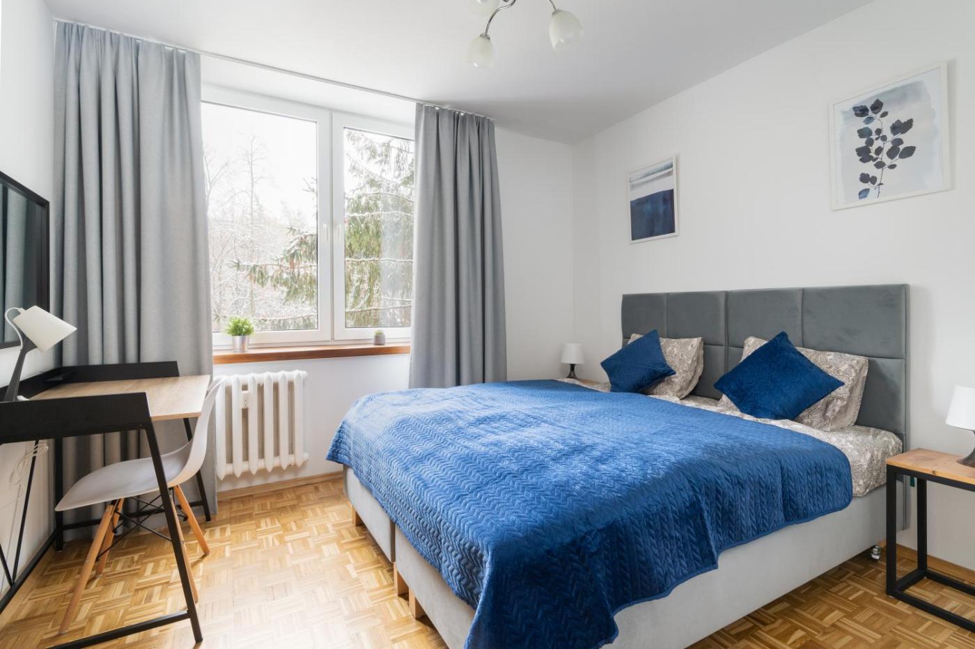 Oferta apartamentu obejmuje kilka sypialni (2), salon, kuchnię z pełnym wyposażeniem, w tym lodówką i ekspresem do kawy, a także łazienkę (1) z prysznicem oraz bezpłatnym zestawem kosmetyków. W apartamencie zapewniono ręczniki i pościel.